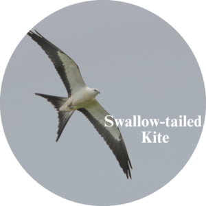 As you explore our beautiful natural areas this spring and summer, look up to see if you can catch a glimpse of the soaring Swallow-tailed Kite. This graceful bird glides through the air and swoops into the tree tops to grab its prey. Don’t miss your chance to see one, as this magnificent bird will leave here late summer or fall for South America.