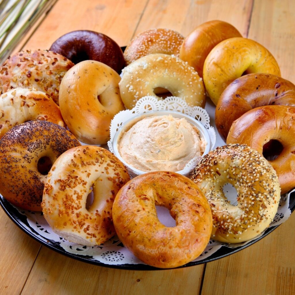 Bagel restaurant serving breakfast all day. Great coffee, sandwiches and salads, muffins, scones, paninis, and quiche.