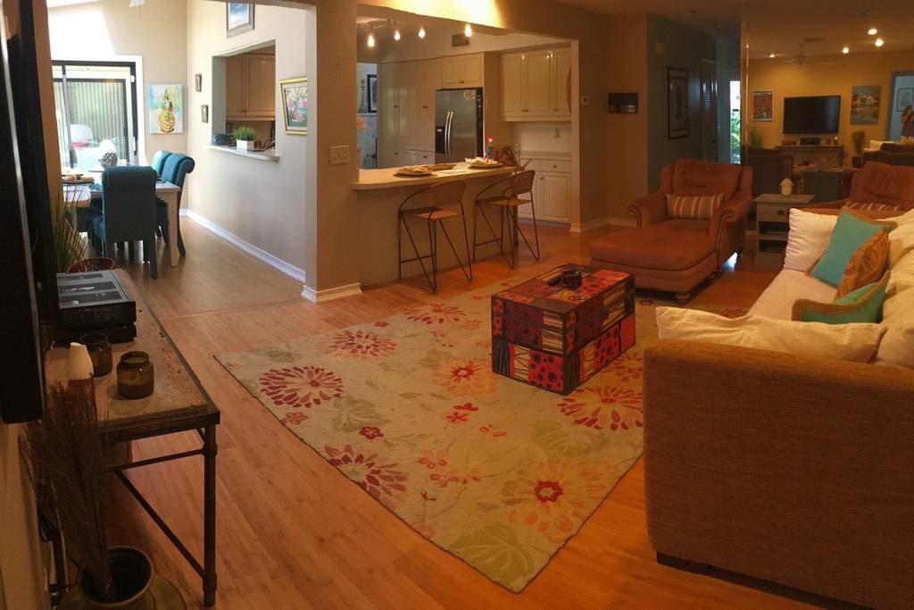 Guests have access to almost the entire home with the exception of the master wing of the home which remains locked at all times. Sleeps 6 adults comfortably.