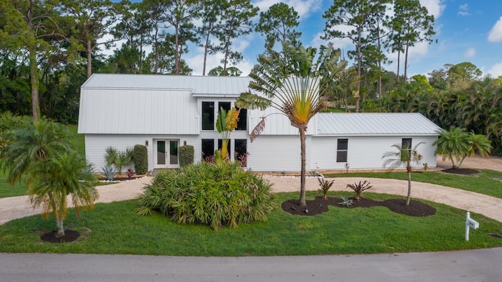 This two-story single-family home will be enjoyable for the whole family. Hi-speed internet, large kitchen with central island, flat screen TV, pool right off sublime sun-room, outdoor patio and seating, grill, fishing right off your dock, and a dock large enough for a 50 foot boat. Located in the beautiful neighborhood of Four Rivers – just a 25 min. boat ride to downtown Stuart, and 15-20 minutes from a number of beautiful beaches!
