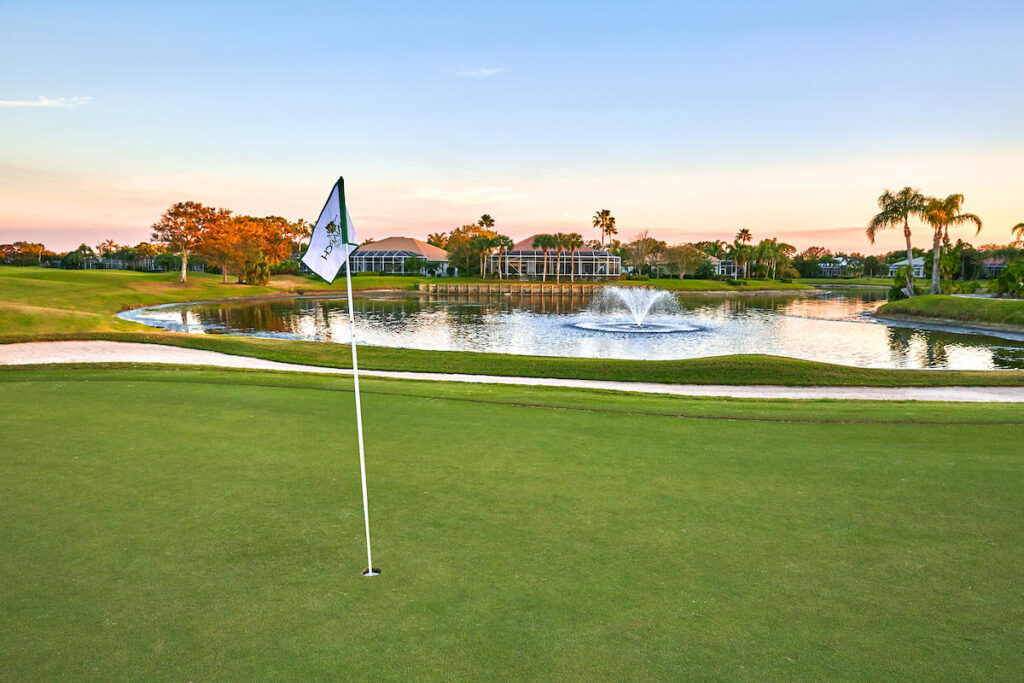 The two-story clubhouse commands a magnificent view of emerald green fairways and azure blue waterways. Its design, contemporary refinements and floor-to-ceiling glass contrast the warmth of soft colors and beautiful palms in an inviting atmosphere. A place of pride built for shared good times.