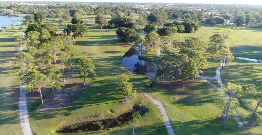 This par 66 course features that old Florida look with southern oak and pine trees. The designated green space has very little sand, but the water hazards and some tight fairways will provide a challenging golf experience. Designed by Arthur Young under the original name of Pine Lakes Golf Club measures 4345 from the the back tees. There are 6 par 3s and 12 par 4s. Located north of the Roosevelt Bridge in Stuart Fl, in the North River Shores subdivision, west of rt. 1 and 1 block off the North Fork of the St. Lucie River. Renamed North River Golf Club in 2014.