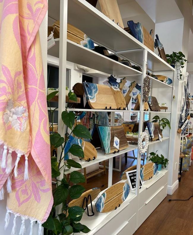 Sand & Sea Boutique is conveniently located in downtown Jensen Beach. Stop in for unique and handmade goods from artists and small businesses all around. Find the perfect tropical-inspired gift or souvenir, like ocean wave resin cutting boards, beach bags, jewelry, and more! Stop by and say hello…you might just discover your new favorite artist!