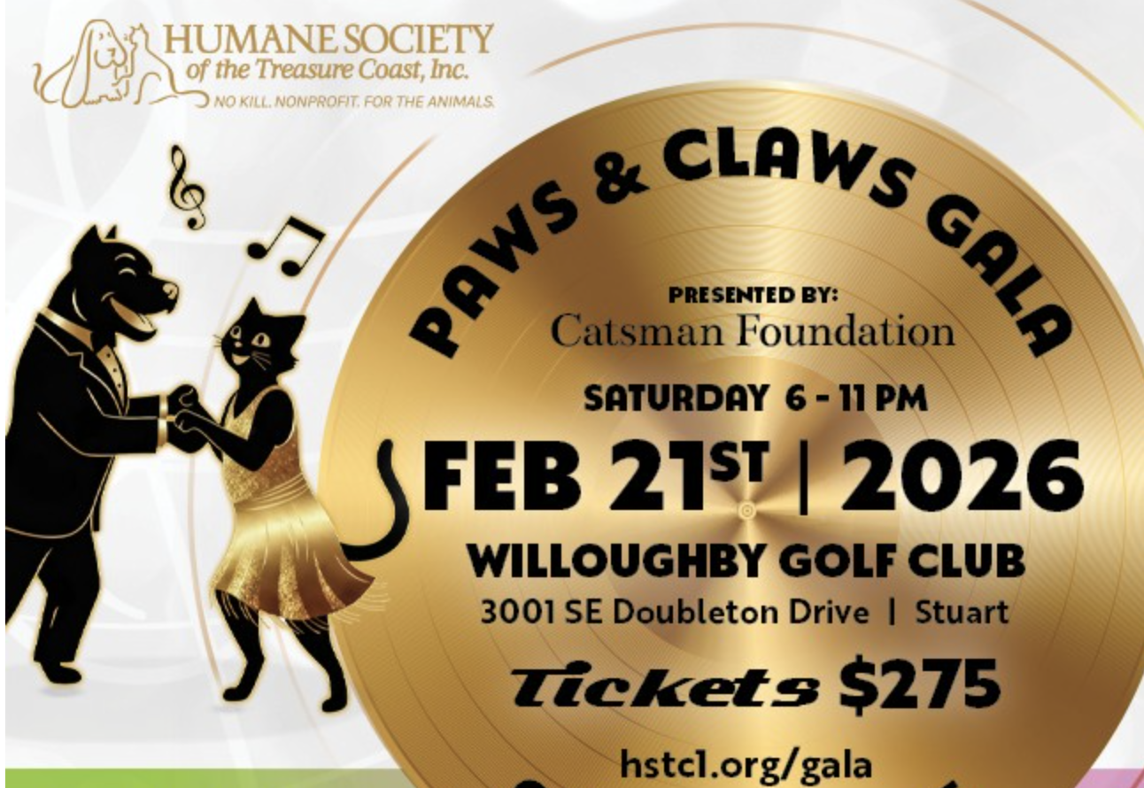 The Paws and Claws Gala is the Humane Society of the Treasure Coast’s premier fundraiser each year featuring flavorful fare, live entertainment provided by The Essence of Motown, both a silent and live auction, and so much more! This year’s theme, “Kool Cats & Diggin’ Dogs”, will get you on your feet and grooving to the rhythm of Motown. Attendees are encouraged to dazzle and shine in Glitz, Glamour and Soul attire.
