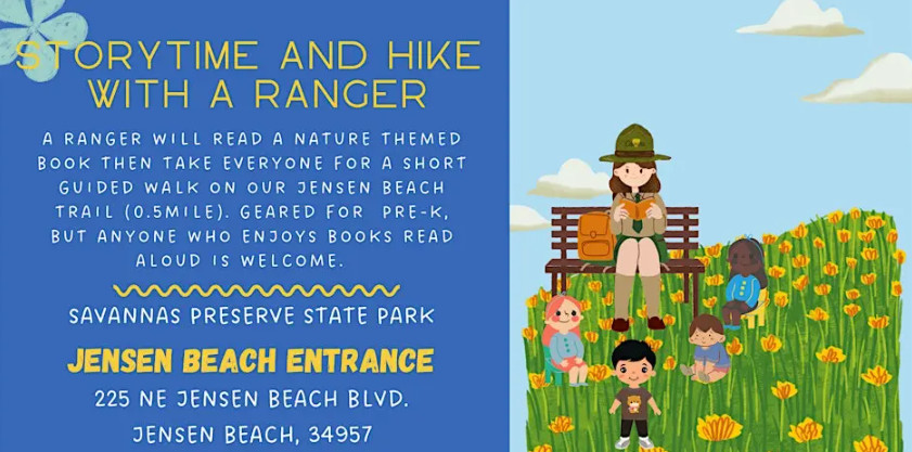 A ranger will read a nature themed book and then lead a short hike on our Jensen Beach hiking trail.