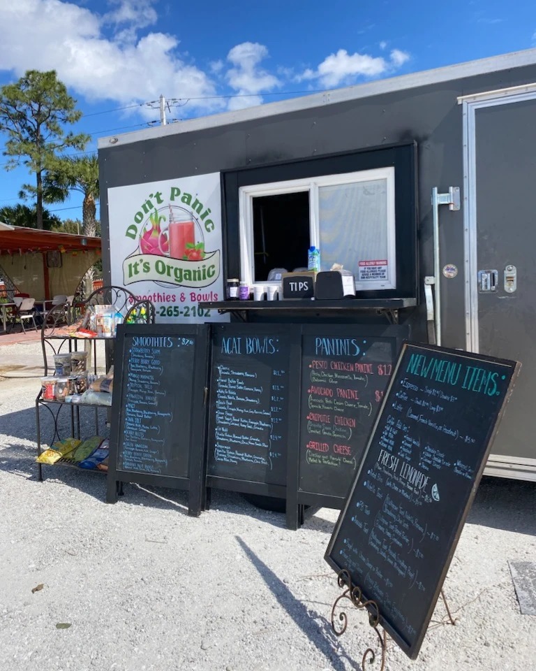 Food truck serving smoothies, açaí bowls, toasts, paninis, flatbreads, espresso, lemonade and LOTUS Energy drinks.